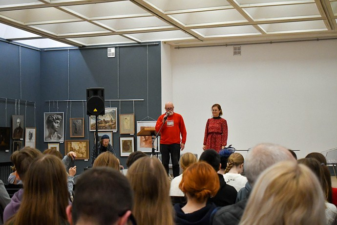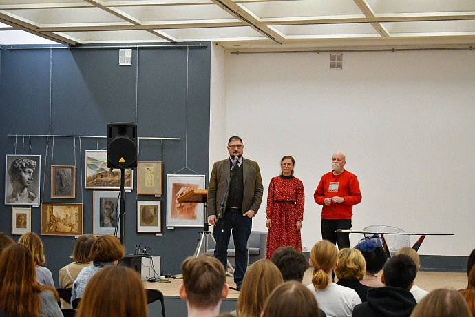 Декан вечернего факультета МАРХИ, доктор технических наук Петр Жук в своем выступлении подчеркнул изящность художественного искусства. По его мнению, рисунок и графика — это та уникальная сфера, где можно быть юным, но уже невероятно талантливым, и развивать этот дар всю жизнь. Он также отметил, что выставка соответствует недавнему поручению президента России Владимира Путина о развитии художественной составляющей в архитектурном образовании.